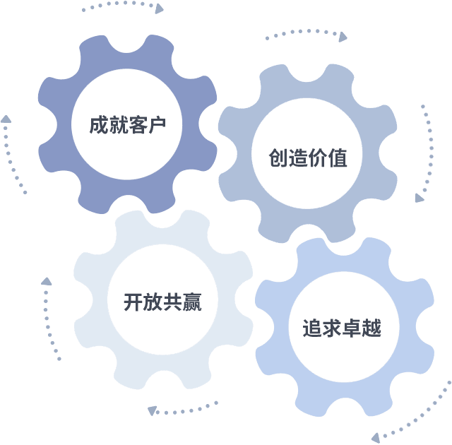 成就客户是一切决策的出发点,,,,创造价值是衡量所有工作的标准,,,追求卓越是6合联盟做事做人的态度,,,,开放共赢是6合联盟的格局也是最终的结果。。。。价值观的齿轮环环相扣,,推动着组织里的每个人不断向前。。